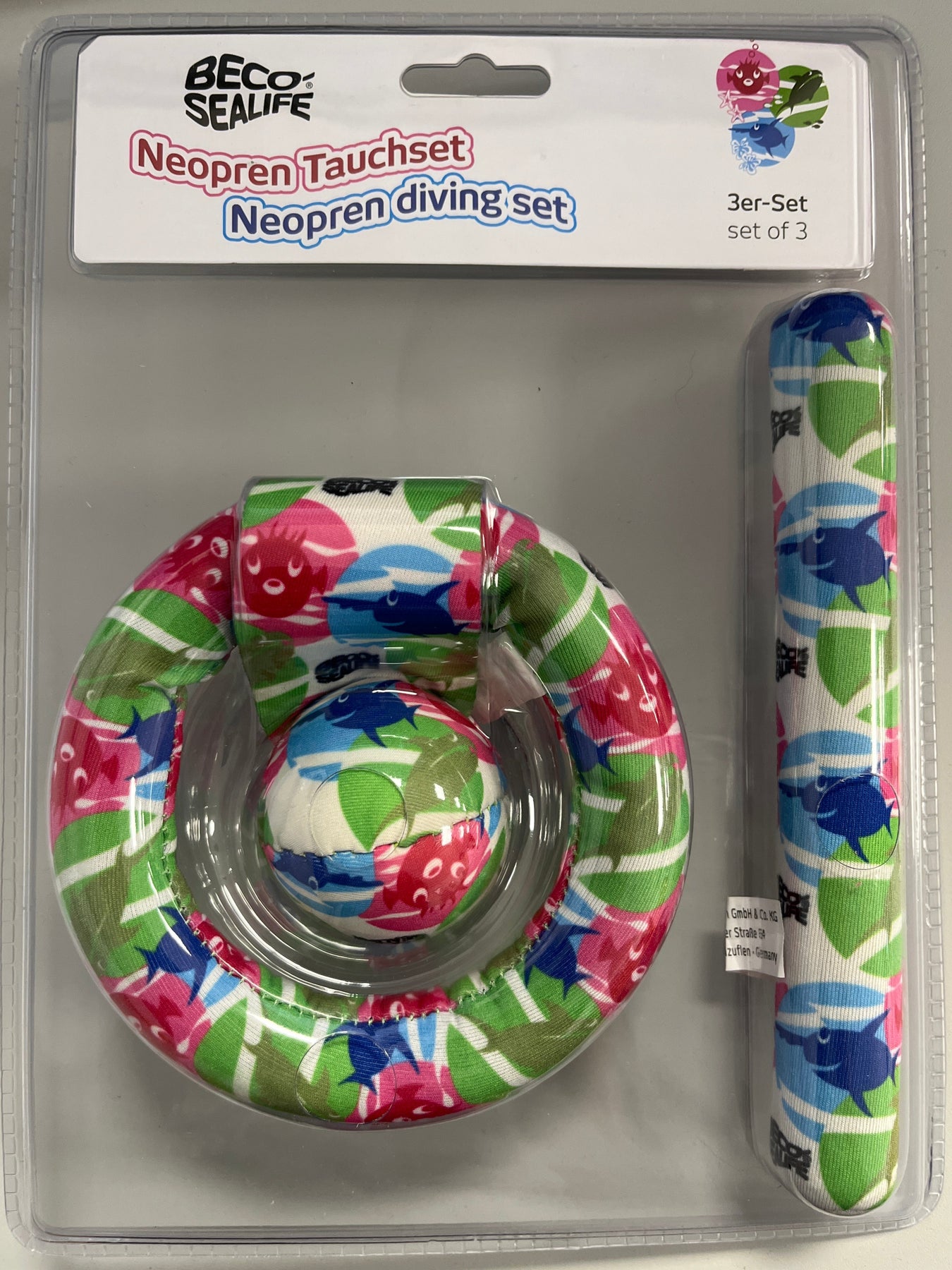 1 x Neopren - Tauchstab 1 x Neopren - Tauchring 1 x Neopren - Tauchball mit Schweif