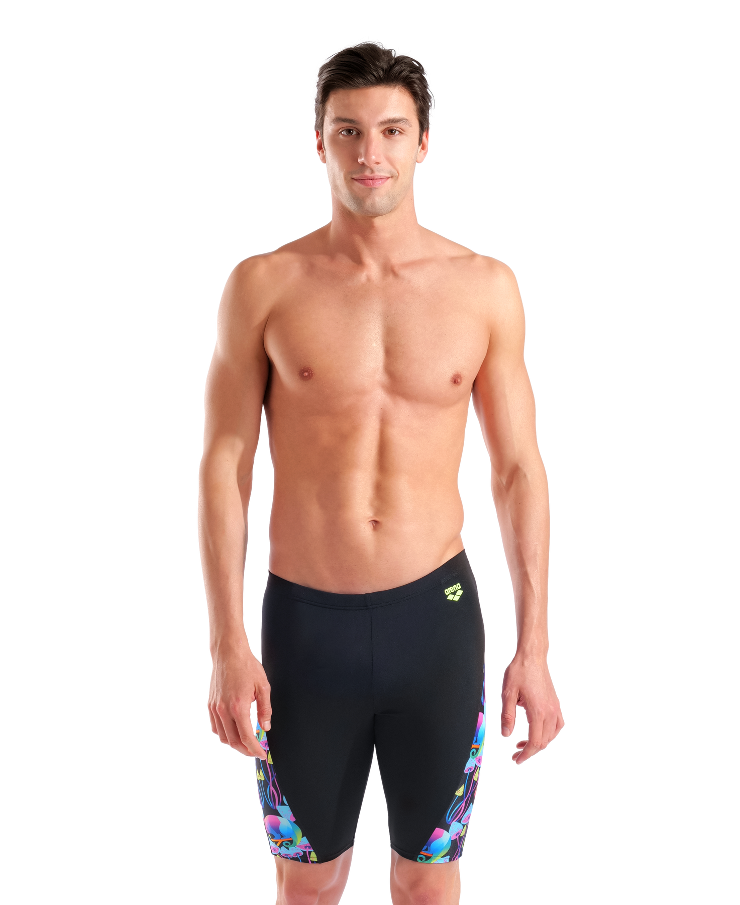 Der Funky Trunks Herren Training Jammer Chameleons im bunten Chameleons-Print besteht aus dem Stoff C-Infinity. Dank der hochwertigen Verarbeitung ist diese Schwimmhose sehr gut für das regelmäßige bis tägliche Schwimmtraining geeignet. Dennoch ist die Badehose weich im Griff, elastisch und angenehm zu tragen.